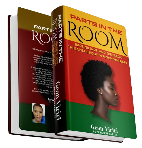 Gean Viriri is a UK-based psychotherapist with decades of clinical experience working with professionals navigating emotional life at work, trauma, and identity. Trained in CBT, EMDR, and integrative practice, her books emerged from lived therapeutic work. She explores emotional triggers in the workplace, self-leadership at work, and emotional regulation at work. Parts in the Room reflects her experience as a Black African therapist examining race, power, and silence in professional therapy spaces.